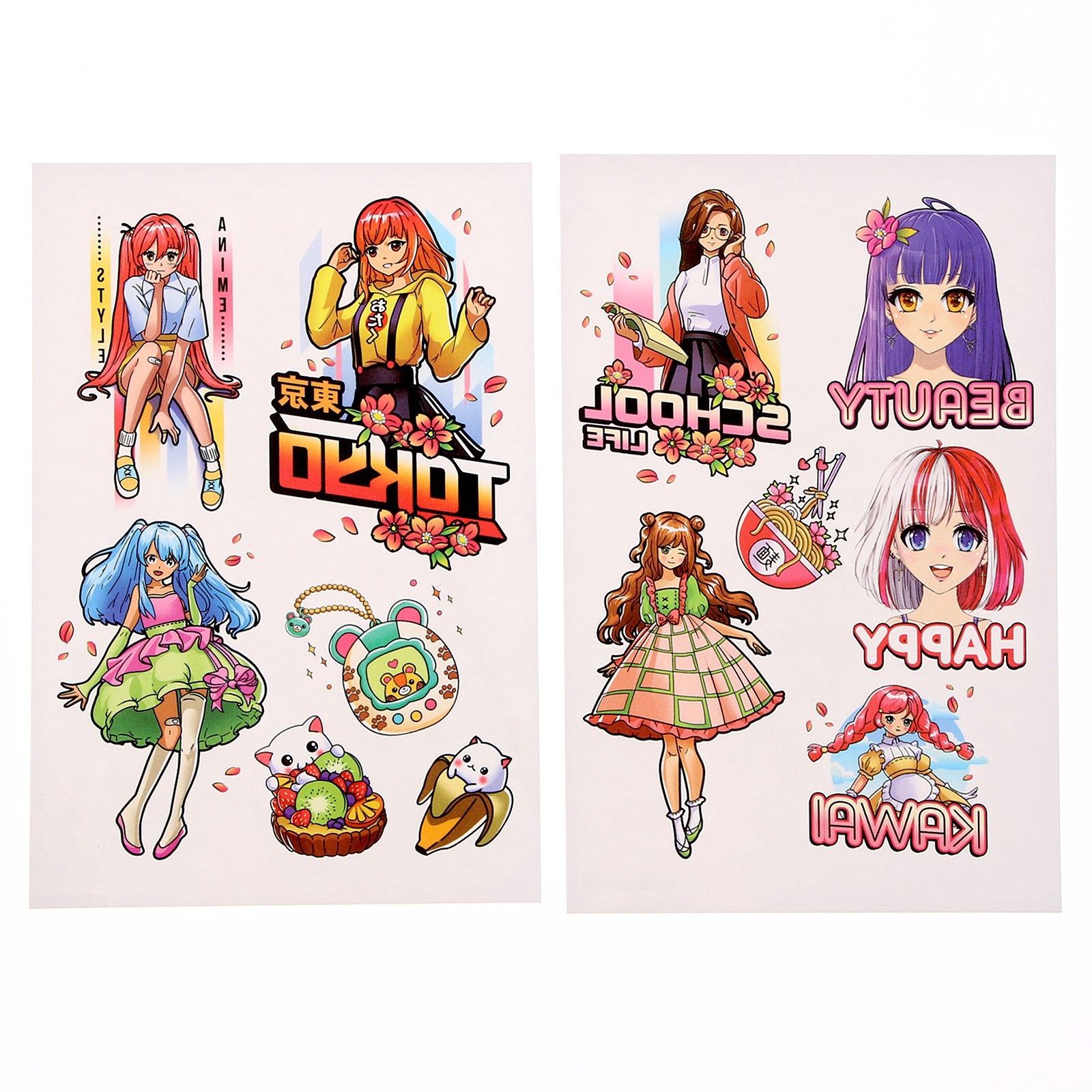 С набором детских тату из серии «Аниме» каждый юный фанат аниме-культуры сможет с помощью временных татуировок украсить не только себя, но и обложку тетради или мебель. Переводные картинки быстро наносятся на кожу и легко смываются.