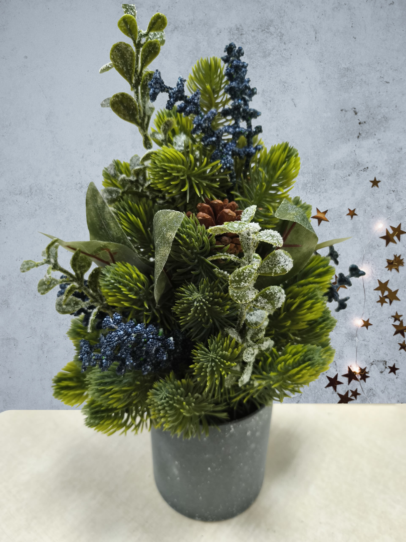 Хвойная композиция – великолепное, яркое и эффектное украшение для праздничного интерьера. Такая композиция сразу бросается в глаза: сочные краски, мастерская имитация живых растений и удивительное сочетание ягод, иголок и натуральных шишек. Оно будет смотреться изумительно везде, куда бы его ни поставили, наполняя ваш дом духом зимних торжеств, атмосферой веселья и радости.